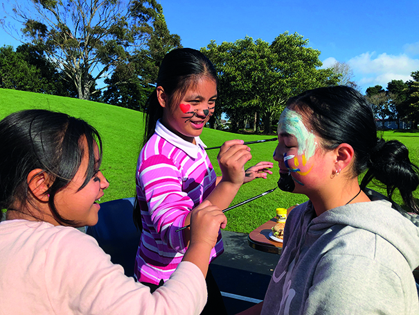 On Saturday morning, the truck was loaded, and the team made their way to a busy intersection in Otara. The students helped with the church’s Community Outreach Day where they participated in activities like face painting, playing games, handing out food parcels and sports equipment.