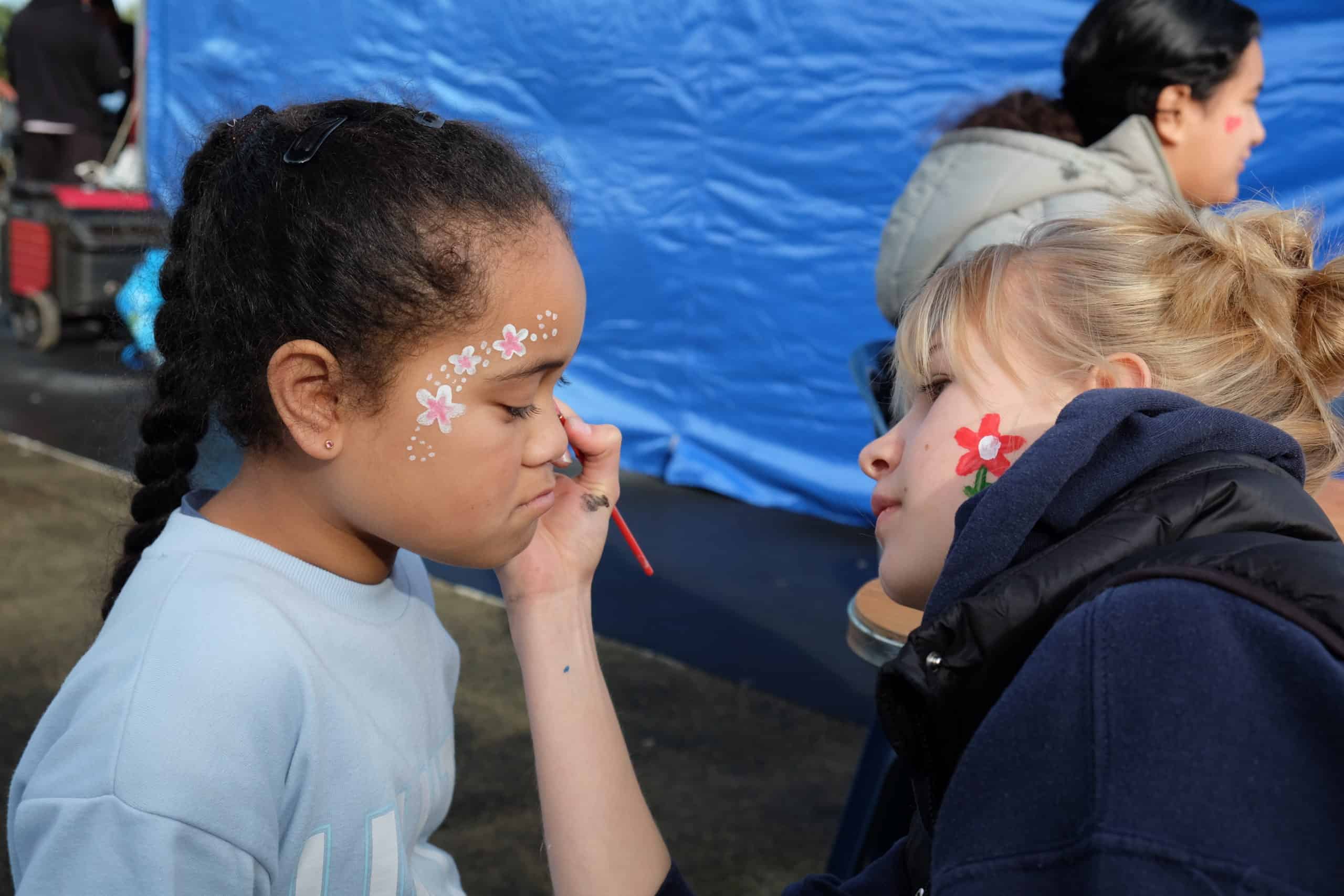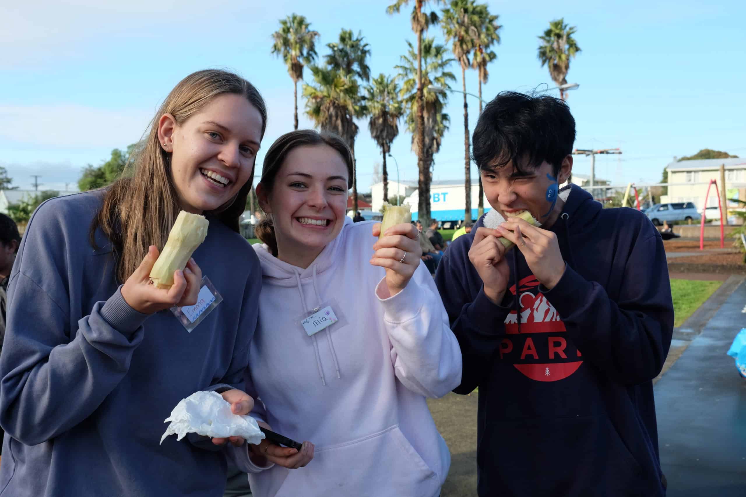 On Saturday morning, the truck was loaded, and the team made their way to a busy intersection in Otara. The students helped with the church’s Community Outreach Day where they participated in activities like face painting, playing games, handing out food parcels and sports equipment.